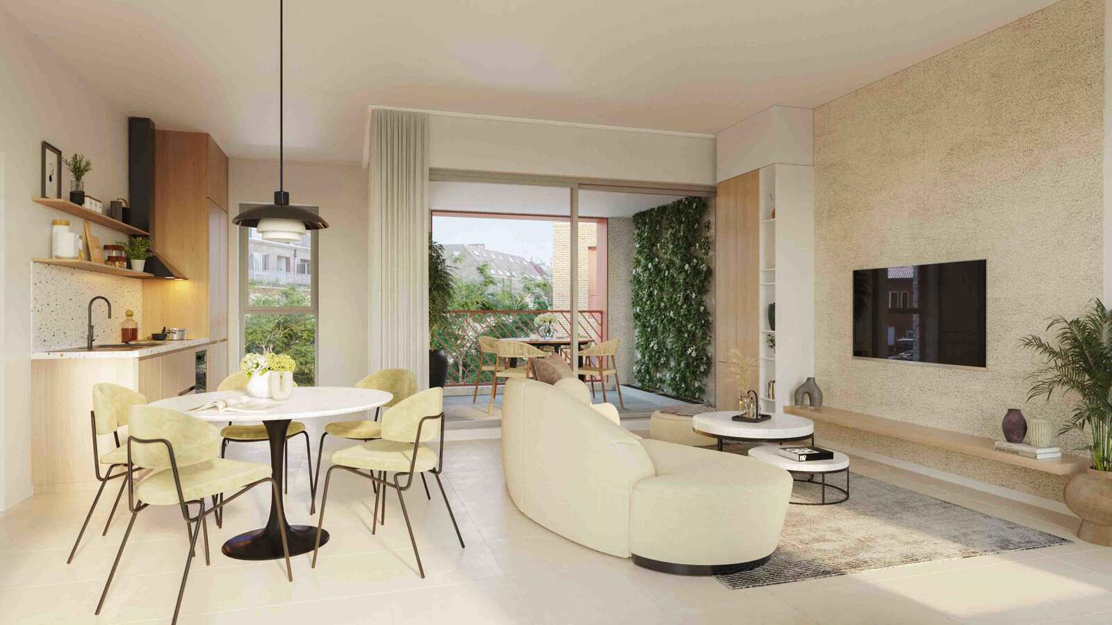 Dit duurzame woonproject omvat 11 woningen, 59 appartementen en 4 handelsruimtes. Je woont hier rustig, maar toch op amper 2km van het centrum. Er zijn appartementen vanaf € 277.000 voor één slaapkamer, vanaf € 298.900 voor twee slaapkamers én vanaf € 360.800 voor appartementen met 3 slaapkamers. Wie aan de voorwaarden voldoet, kan bovendien genieten van het verlaagde btw-tarief van 6%.