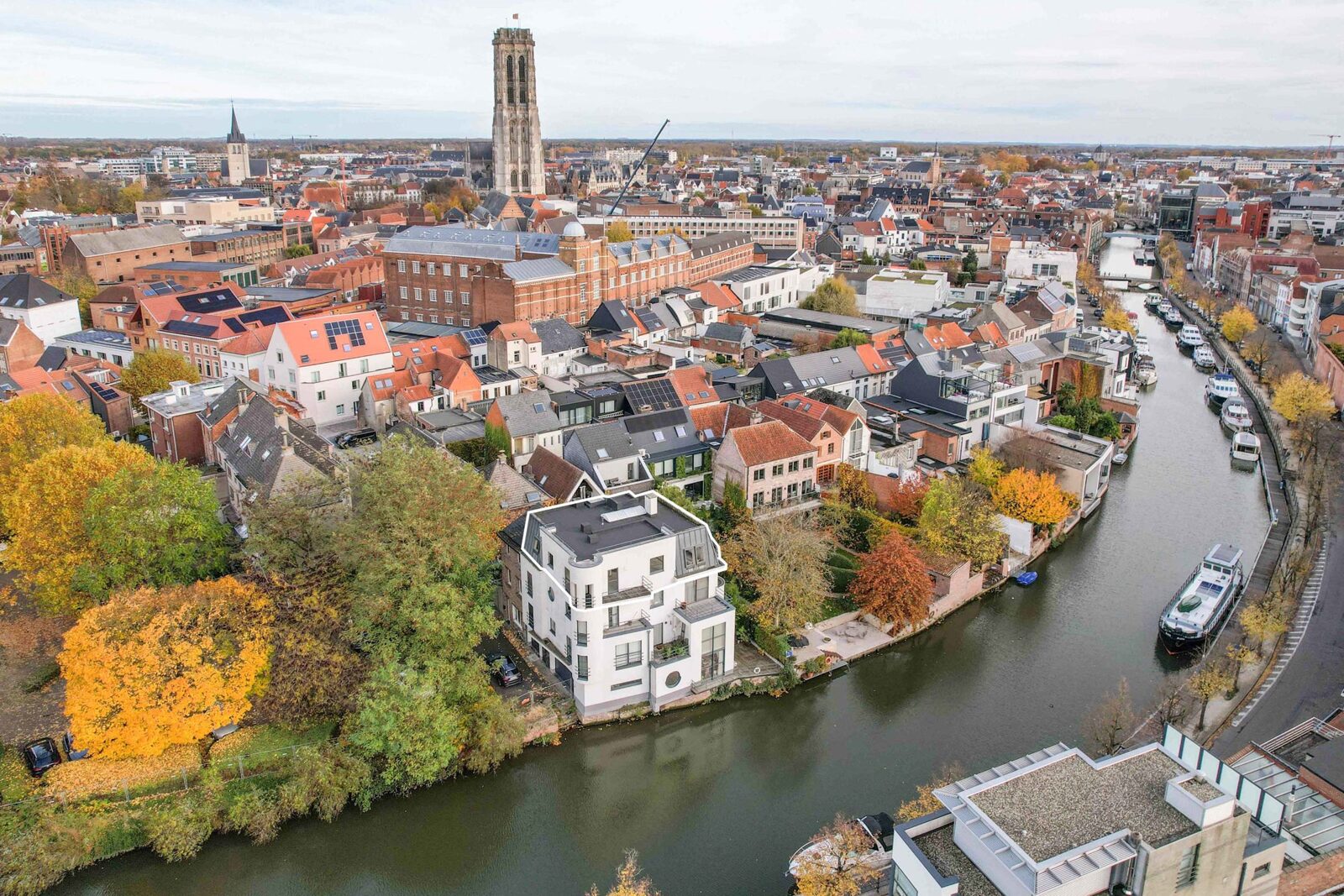De locatie is zonder overdrijven uniek. Een rustige, autoluwe omgeving aan de Dijle, en toch op wandelafstand van alle stedelijke voorzieningen: horeca, winkels, cultuur, scholen, openbaar vervoer en de Vaart. De Sint-Romboutstoren en de historische skyline vormen uw dagelijkse decor.