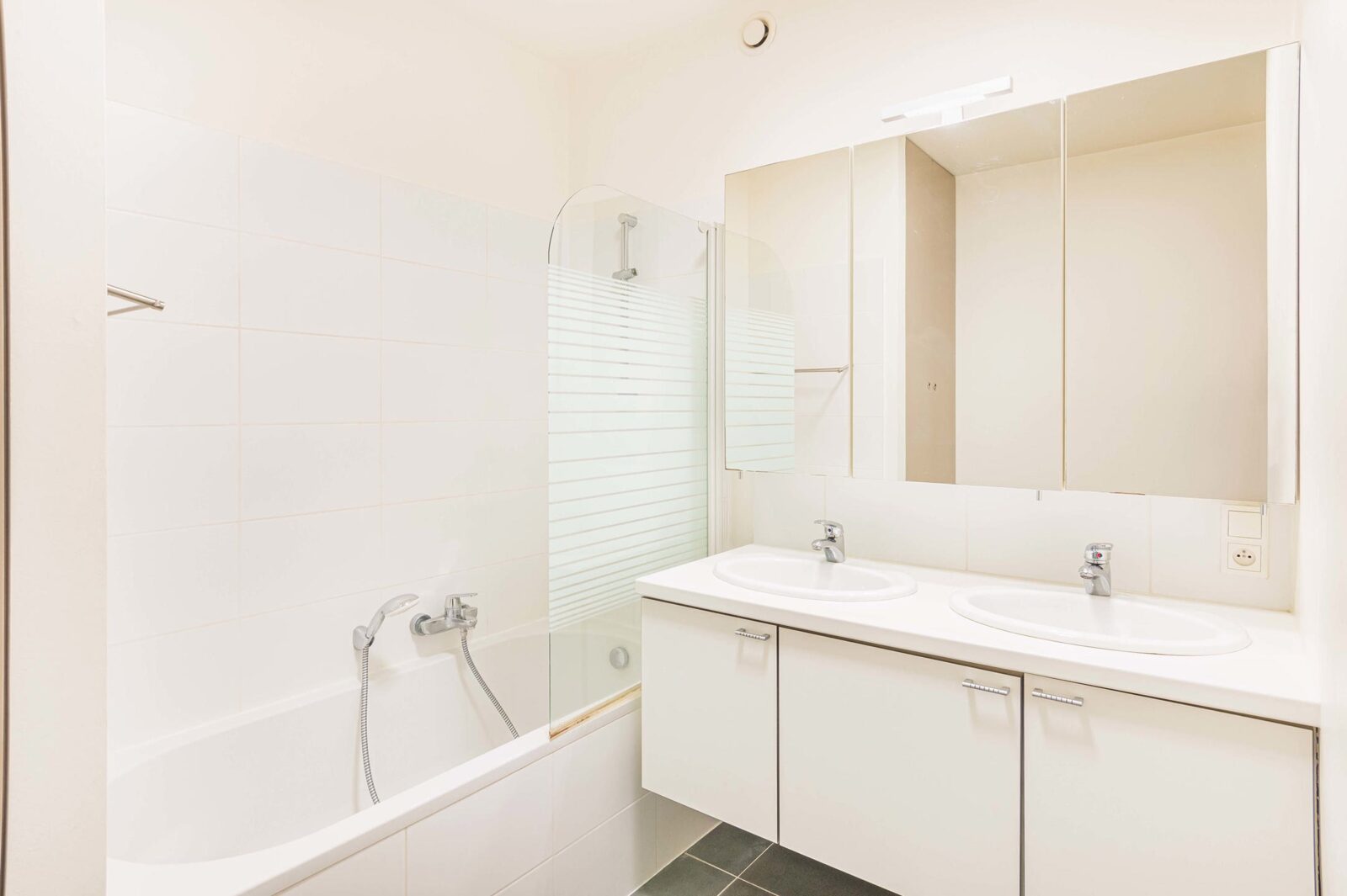 Het appartement beschikt over twee volwaardige slaapkamers met mooie lichtinval en een rustige sfeer. De volledig ingerichte badkamer is uitgerust met een dubbele lavabo en een ligbad met douchemogelijkheid. Daarnaast is er een apart gastentoilet en een praktische wasruimte.
